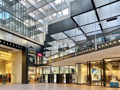 On the ground, a string of sidewalk patios beckons you to relax, sip a drink, and watch the world go by-minus the clamor of traffic.