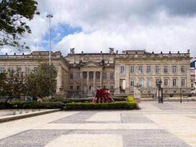 The House of Narino seamlessly combines neoclassical and French influences, reflecting the expertise of its designers. Inside, it showcases a collection of art and furnishings spanning various historical periods. The Parade Ground (Plaza de Armas), located on its northern side, is a ceremonial space where foreign dignitaries are received. Notable sculptures in the plaza include a replica of the pre-Columbian "El Dios de la muerte" and “Vigilantes”, a striking aluminum piece by Edgar Negret.