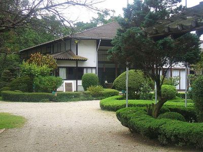 The garden's central building, created by Sutemi Horiguti, a professor at the University of Tokyo, is a replica of the Katsura Palace, the former summer residence of the Emperor in Kyoto, Japan, built between 1620 and 1624. It is divided into a hall and several adjoining rooms that house a display of samurai clothes, pottery, ceramics, costumes, and sculptures from several Japanese imperial dynasties. Upstairs is the Tea Room, known as chashitsu, used for traditional tea ceremonies.