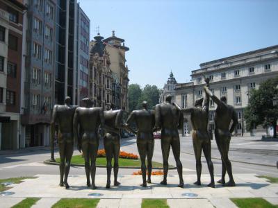 Carbayón Square is a compact space, just off the Campoamo Theater, where festival crowds spill through during major cultural events. Its focal point is the Concord Monument, a bronze work by sculptor Esperanza d’Ors installed in 1997. The piece groups six human figures-three men and three women-arranged in pairs, a clear, modern allegory of unity.