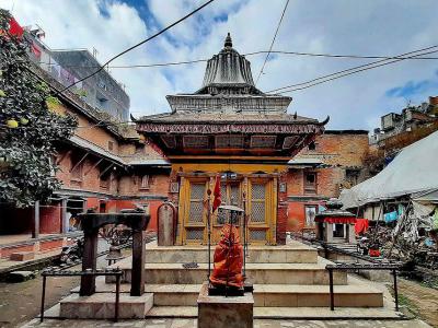 Ram Mandir in Kathmandu is a distinguished Hindu temple prominently situated on the east bank of the sacred Bagmati River. Constructed in 1871 by Sanak Singh Tondon, this temple spans an area that once measured 374 ropanies, reduced now to just 2.75 ropanies. The temple complex is historically significant, noted for its unique Domb architectural style-a rarity in Nepal-which beautifully integrates elements of Royal Gombaz and Mughal architecture, reflective of the historical Mughal influence in the region.