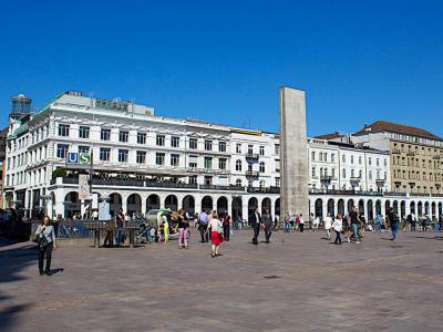 This area was heavily damaged during the Great Fire of Hamburg in 1842. Venice's Piazza San Marco inspired the new square's design. The impressive City Hall dominates the square.