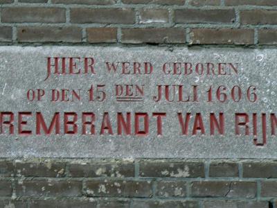 Leave the bridge. Walk south. Enter the Weddesteeg. Proceed to number 27. Here was Rembrandt born. The house is gone. Well, there is a house here, but it's not the one our man was born in. That was demolished years ago. But wait. There's a plaque over the front door. It reads, "Here was born on the 15th of July 1606 REMBRANDT VAN RIJN."