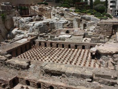 Ancient Berytus had four large thermae, or bath complexes. The bather would move through rooms with temperatures ranging from cold to hot. The heat was provided by a heating room under the bath floors. Terracotta disks and pipes warmed the air. There were pools of hot and cold water. Finally there was a massage parlor and spaces for music performances.