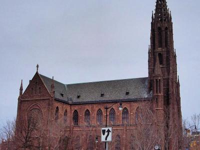 After a brick version of the church was completed in 1843 (only to be destroyed by fire in 1885), the present Gothic Revival masterpiece was dedicated in 1889. Designed by Schikel & Ditmars of New York, the third church iteration is a striking vision of carved stone, rich wood, and radiant stained glass. Its most remarkable feature is the 245-foot octagonal Medina sandstone steeple crowned with a 72-foot pierced spire-the tallest openwork stone spire in the United States, entirely unreinforced.