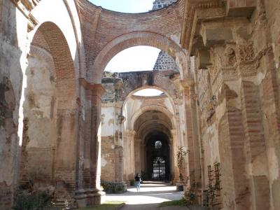 Behind the church, entered from 5 Calle Oriente, are the ruins of the rest of the structure; a mass of fallen masonry, broken arches and hefty pillars, cracked and moss-covered, the great original cupola now a window to the sky. At the very rear of the original nave, steps lead down to a burial vault, blackened by candle smoke, that's regularly used for Maya religious ceremonies – an example of the coexistence of pagan and Catholic beliefs, so characteristic of Guatemala.