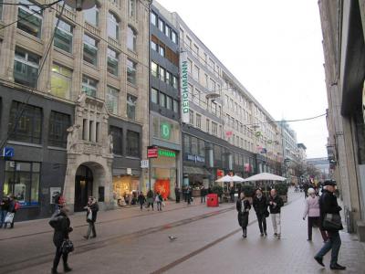 By the early 20th century, between 1906 and 1909, the street was transformed with the construction of grand Hanseatic merchant buildings. In 1968, it was converted into a pedestrian zone, enhancing its appeal as a shopping destination and helping to manage the increased motorized traffic of the era. Today, Hospital Street is recognized as one of the most frequented pedestrian zones in Germany, with a foot traffic of 13,070 persons per hour on a typical Saturday in 2015, ranking it the fifth most visited street in the country.