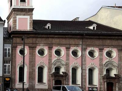 The Hospital Church (Spitalskirche) stands at the entrance of Maria Theresien Street near the historic old town of Innsbruck. It has a long history spanning many centuries and is recognized as a significant landmark in the area. Originally built outside the city walls and closely associated with a hospital, the church was intentionally isolated from the old town by thick walls to prevent the spread of diseases, as people wanted to avoid contact with the sick. Although the hospital that was once adjacent to the Hospital Church is no longer there, the church itself has undergone significant changes over time.