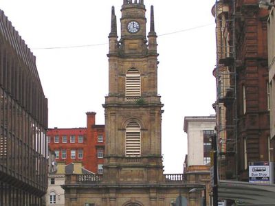 Saint George’s Tron Church is one of Glasgow’s most recognisable landmarks, standing prominently at the junction of Buchanan Street and Nelson Mandela Place in the city centre. Completed in 1808, it was designed by the architect William Stark, whose neoclassical style gave the church a sense of grandeur and balance suited to its busy urban setting. Its tall steeple, rising to more than 160 feet, became a guiding point for Glaswegians moving through the heart of the city, and it remains a key feature of Glasgow’s skyline.