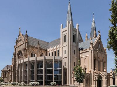 Saint Mary's Cathedral is a Roman Catholic cathedral in Victoria Square. It replaced the colony's first Roman Catholic church, Saint John's. The cathedral was designed by Joseph Ascione in the Norman Gothic architectural style.