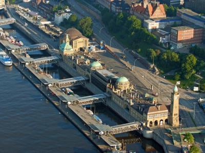 The 205-meter-long (672-foot) terminal building features two distinct green domes. On the attractive Saint Pauli Piers promenade, visitors can find restaurants, cafes, and bars along the piers. Visitors can also enter the Old Elbe tunnel from the piers.