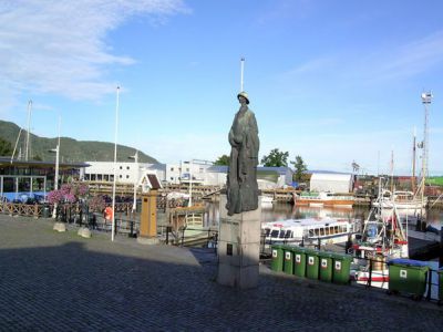 The Last Viking Statue, located in Trondheim, is a monument honoring Norwegian fishermen and their resilience, inspired by Johan Bøjer's novel "Den Siste Viking" (The Last of the Vikings). Built in 1990 near Ravnkloa's docks, a historic fish market area, the statue symbolizes the fishermen's lives and their deep connection to the sea.