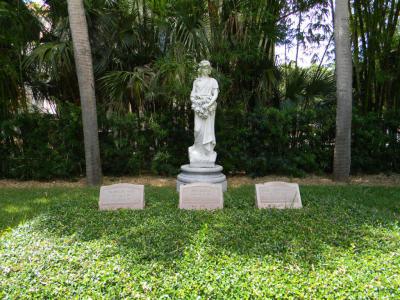 The last resting place of the Ringling family is called the Secret Garden. John Ringling is buried between the two women. There is a locked gate around the three graves and tombstones. During the day, the gate is unlocked and opened. On the anniversary of John Ringling, neighboring New College students will often sneak in and place a cigar on John's grave.