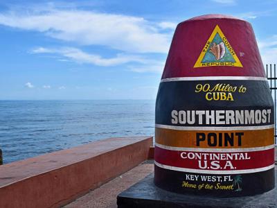 Just a few blocks from Duval Street, at the intersection of South Street and Whitehead Street, is a painted concrete buoy – 12 feet tall and 7 feet wide. This landmark indicates the southernmost point in the continental United States, as well as the southernmost point of the island chain that makes up the Florida Keys.