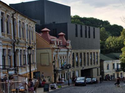 Andriyivskyy (Andrew's) Descent is a historic cobblestone street, running 720 meters (2,360 ft) downhill from the Upper (Old) Town of Kiev to the once commercial neighborhood of Podil (Lower Town), ending at Kontraktova Square.