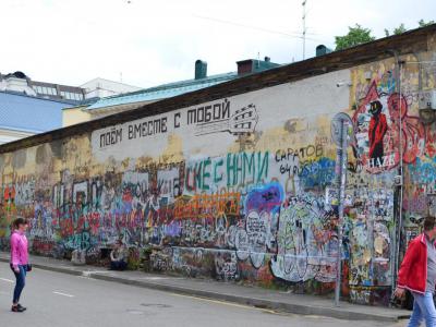 The Tsoi Wall (Russian: Stena Tsoya) is a graffiti mural in Moscow dedicated to the Soviet rock icon Viktor Tsoi and his band Kino. Located at the house №37, the memorial is considered to be one of Moscow's cultural landmarks.