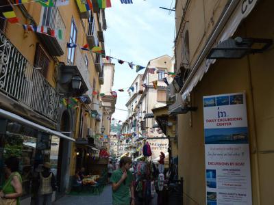 San Cesareo Street has always been a "main" street. In Roman times it was the central cross street of ancient Sorrento. It is a bit shorter than Italy Avenue. On Italy Avenue, the shops are sizeable and the street roomier. San Cesarea Street is often cramped with people and merchandise together.