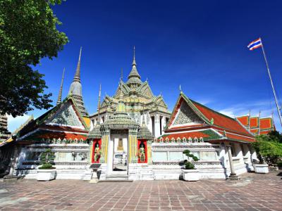 Wat Pho (the Temple of the Reclining Buddha) is the oldest Buddhist temple in Bangkok, located behind the splendid Temple of the Emerald Buddha, and is one of the city's largest. Built around 200 years before Bangkok became Thailand's capital, the temple is mainly famous for housing the huge Reclining Buddha statue along with the largest number of Buddha images within. The Wat was almost entirely rebuilt during the reign of Rama I, when the capital was moved to Bangkok.