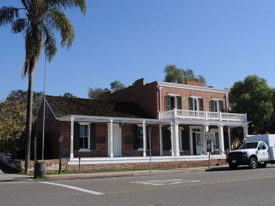The history of Southern California's first two-story brick structure is quite interesting. A classic example of mid-nineteenth century Greek Revival architecture, it also served as San Diego's first courthouse, commercial theater, and home to Thomas Whaley. The building was reportedly built on top of a graveyard and site of a former gallows. The bricks were made at Whaley's kiln in Old Town, and the walls were finished with plaster made from ground seashells.