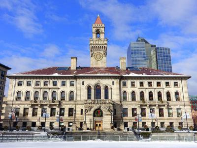 The design of Worcester City Hall is rich with symbolic and classical details. Round-arched windows and doors, along with a profusion of carved classical elements, adorn the building. Observant visitors will notice symbolic lion’s heads, a spread-winged eagle over the entrance, and a wreath of flowers and fruit at the base of the clock tower. A particularly notable feature is the heart in the center of a wreath, symbolizing Worcester's nickname, the "Heart of the Commonwealth." This intricate and thoughtful design elements emphasize the building's role as a "palace for the people of Worcester."