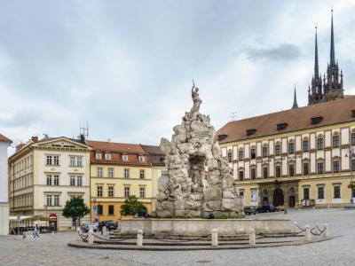Zelný Trh (Vegetable Market Square) and Parnas Fountain, Brno
