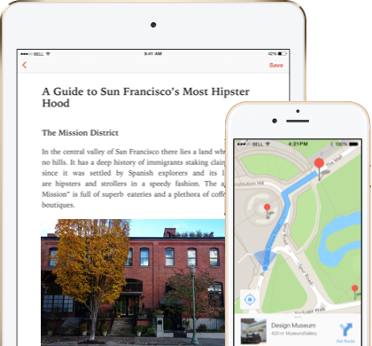 i) Read offline. An article app can be read offline, e.g., on an airplane or carried around while sightseeing. This means no more boring hours on a plane because now travelers can read about their favored destinations and plan their trips accordingly. And later, instead of trying to recall what's been said about this or that attraction on your website, they can simply read about it while standing right in front of the attraction.