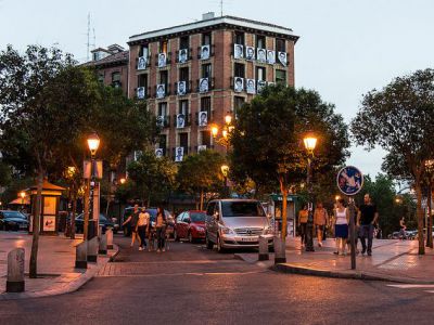 If you are here on a Sunday or public holiday, investigate the stalls of El Rastro, the most popular flea market in Spain. There are hundreds of stalls filling the streets where you can buy clothes, jewelry, handbags, electronic goods, toys and much more. The range is simply astonishing. Many of the products are brand new, but you will also be able to find some secondhand bargains. Another popular marketplace is Mercado de San Fernando. It is known for its curios and cheap products as well as the bars that sell local Spanish wines. Stop for a revitalizing glass or two. Another good place for some refreshments is Gaudeamus Café, which sits atop a ruined church. In addition to the great shopping, Lavapiés provides a glimpse into a type of housing that is characteristic of old Madrid. This is La Corrala building, a fine example of a traditional tenement block.