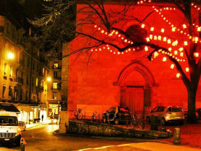 At Christmas time, the area is adorned with a row of lamps, a beautiful and romantic sight at night. A few steps from the square is St.Peter's Cathedral, where John Calvin, one of the 16th-century leaders of the Protestant Reformation used to preach. Inside is his wooden chair.
