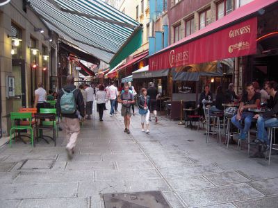 Near the promenade is the rue Mercière, a haven of wonderful cuisine, including traditional French fare and meals with delicious contemporary twists. There are approximately 40 restaurants lining this cobblestone street. The atmosphere here is always convivial, but even more so in the summer when the restaurants open up their terraces and the tables and chairs spill out onto the streets.