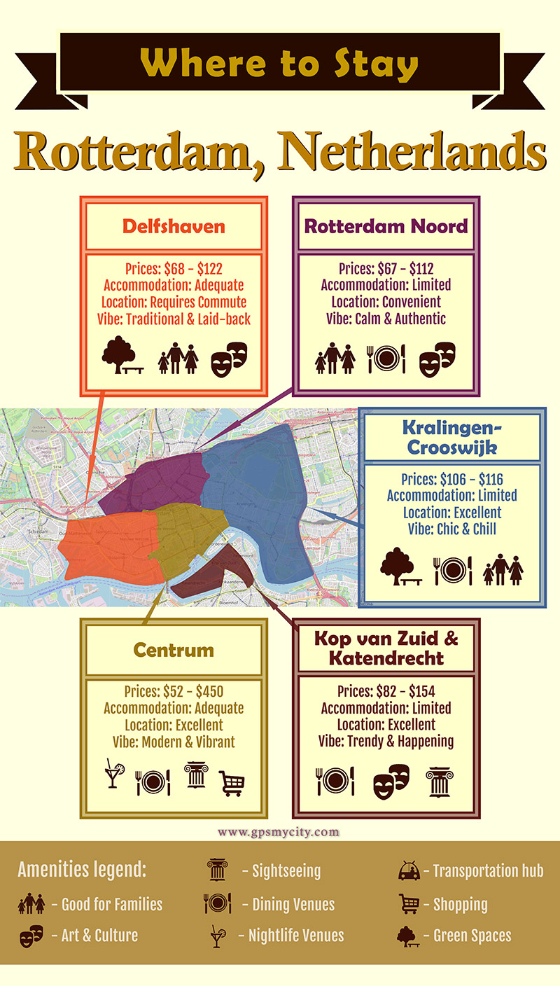 For those traveling as a family, Rotterdam Noord, Kralingen-Crooswijk and Delfshaven will be the best neighbourhoods to choose from.